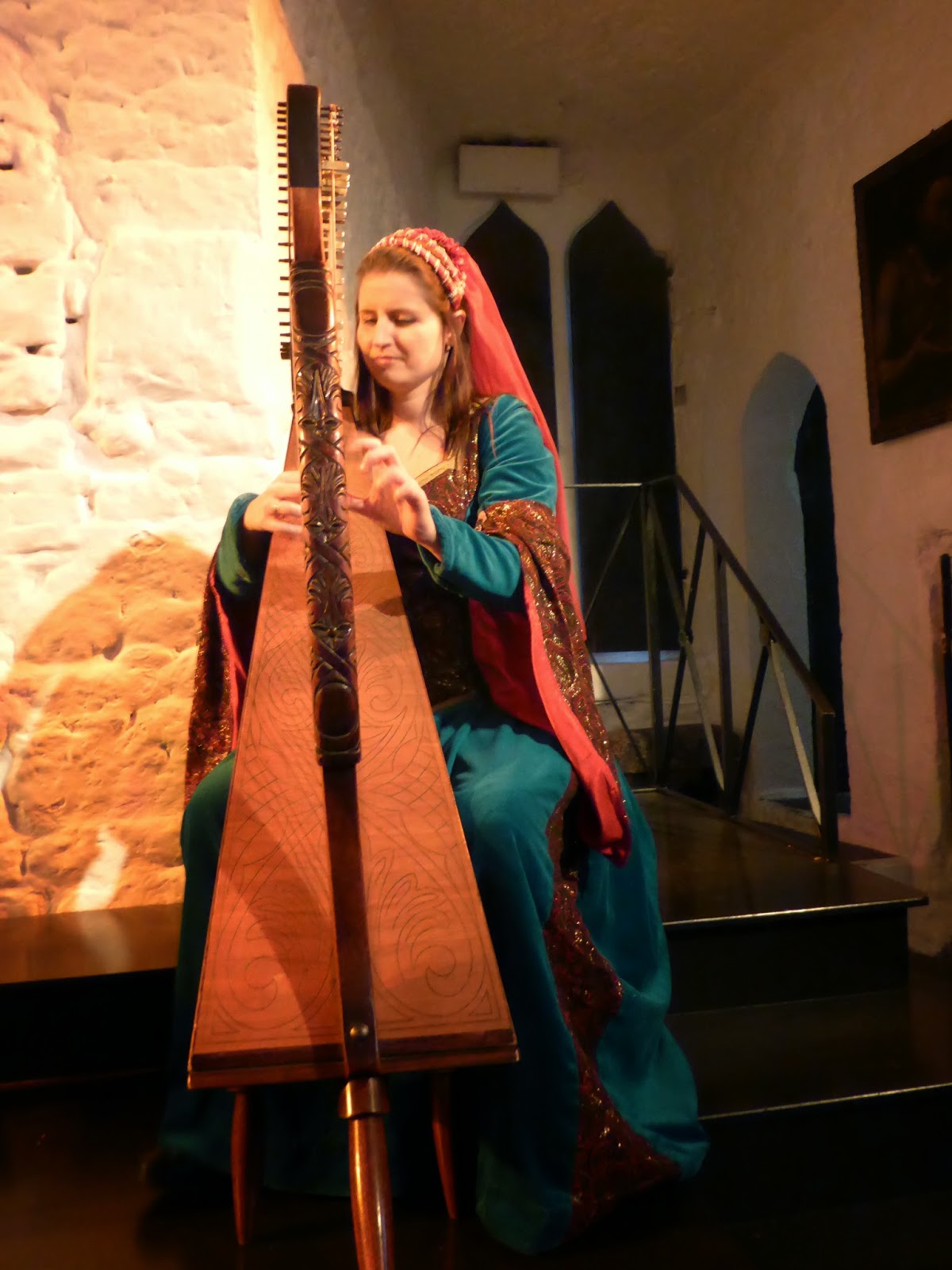 We were welcomed by the butler and ushered into the Great Hall, decorated with five hundred year old tapestries and Irish elk horns that are many thousands of years old. There is even a pagan 'sheela' fertility symbol embedded in the wall believed to have possible come from Brittany. Here we sampled some mead (we adults did in any case), were offered the Bite of Friendship (small pieces of bread to dip in salt) and listened to some lovely medieval music.